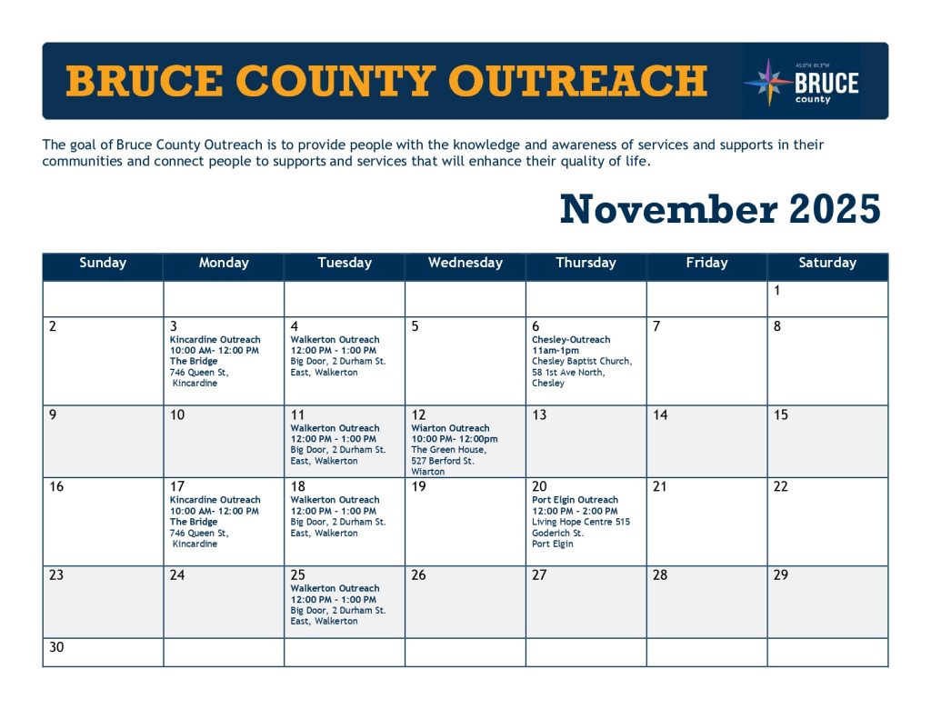 Bruce County Outreach is a new resource now being offered across the county to provide people with knowledge and awareness of services and supports in their communities, and connect them with these supports and services.