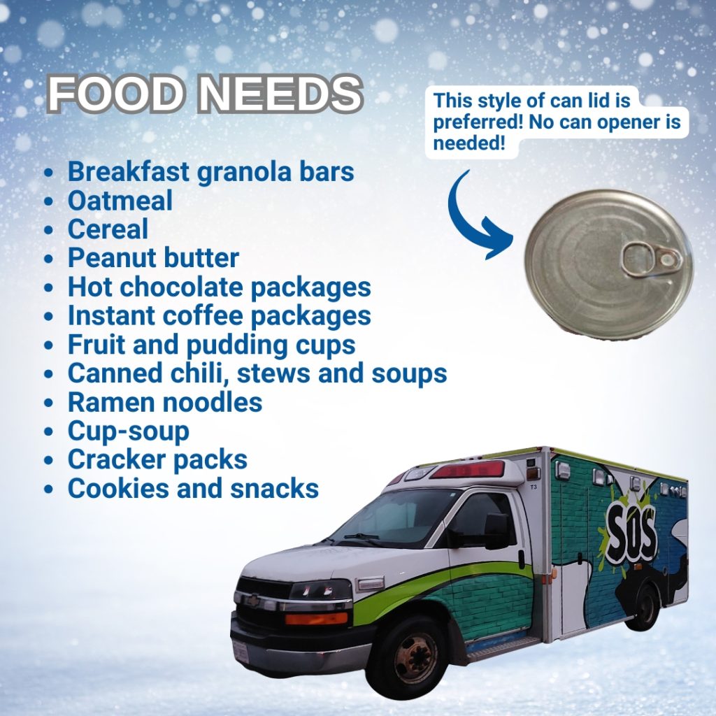The SOS team is coming together to collect critical food and supplies for Owen Sound’s homeless community. With winter approaching, these items are essential in helping our neighbours stay warm, safe, and nourished. We’ve created a list of key items available right in-store at Food Basics that can make a meaningful difference in someone’s life.